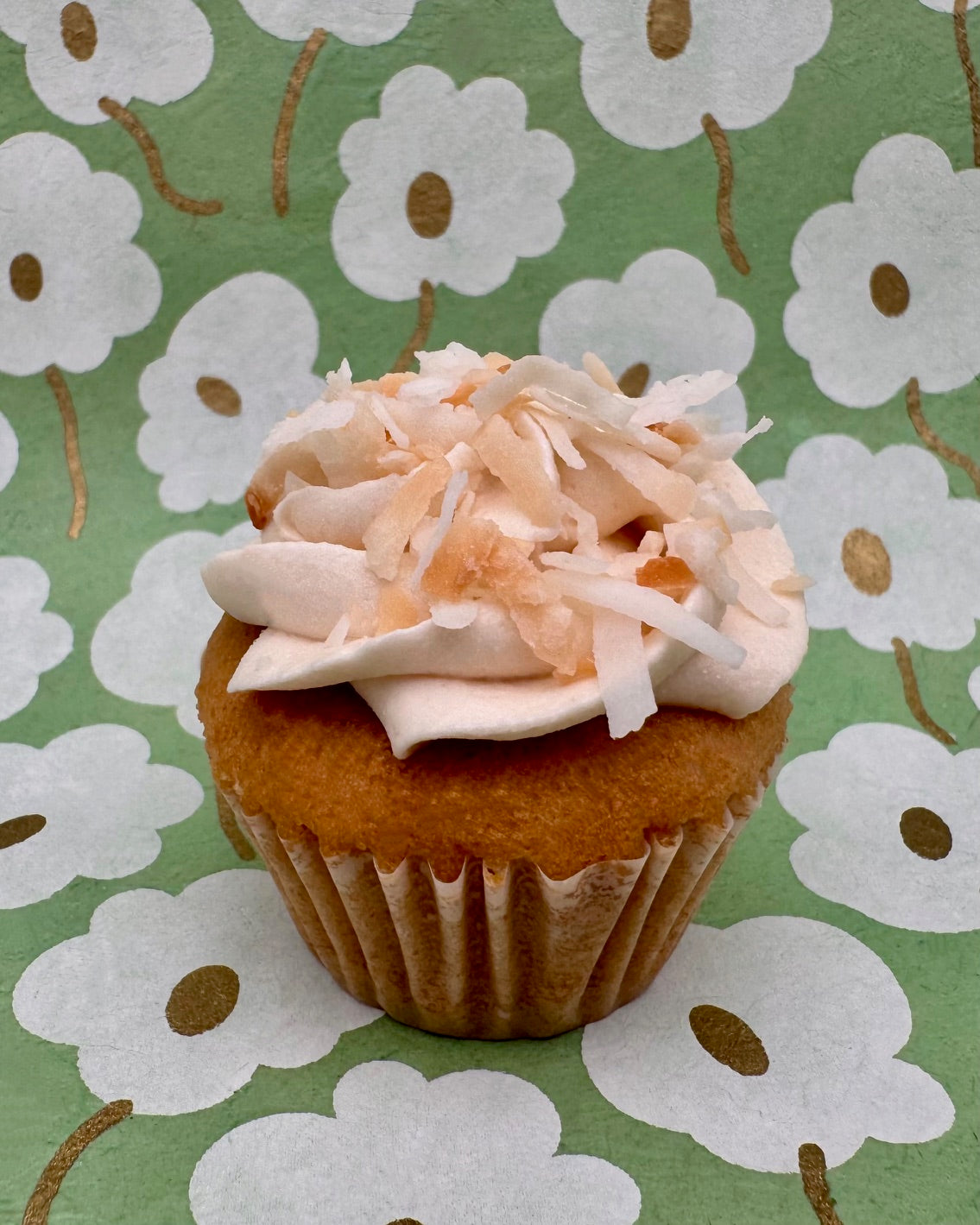 Moist coconut cake layered with luscious coconut buttercream and topped with toasted coconut flakes, bringing a burst of island breeze with every bite.